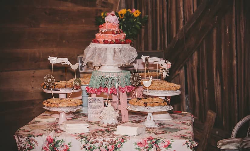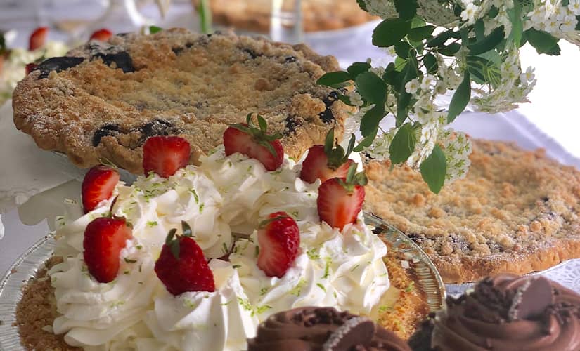 One of our missions is to honor traditions. One of the most special and wonderful of all traditions is celebrating the marriage of two folks with family, friends, and of course yummy food. We bake wedding pies and extra special wedding cupcakes. Take a look at some of the pictures below, and then give us a call to schedule a meeting with us (complete with a "tasting"). We'd love to help you make your wedding a special day and extra special memory!